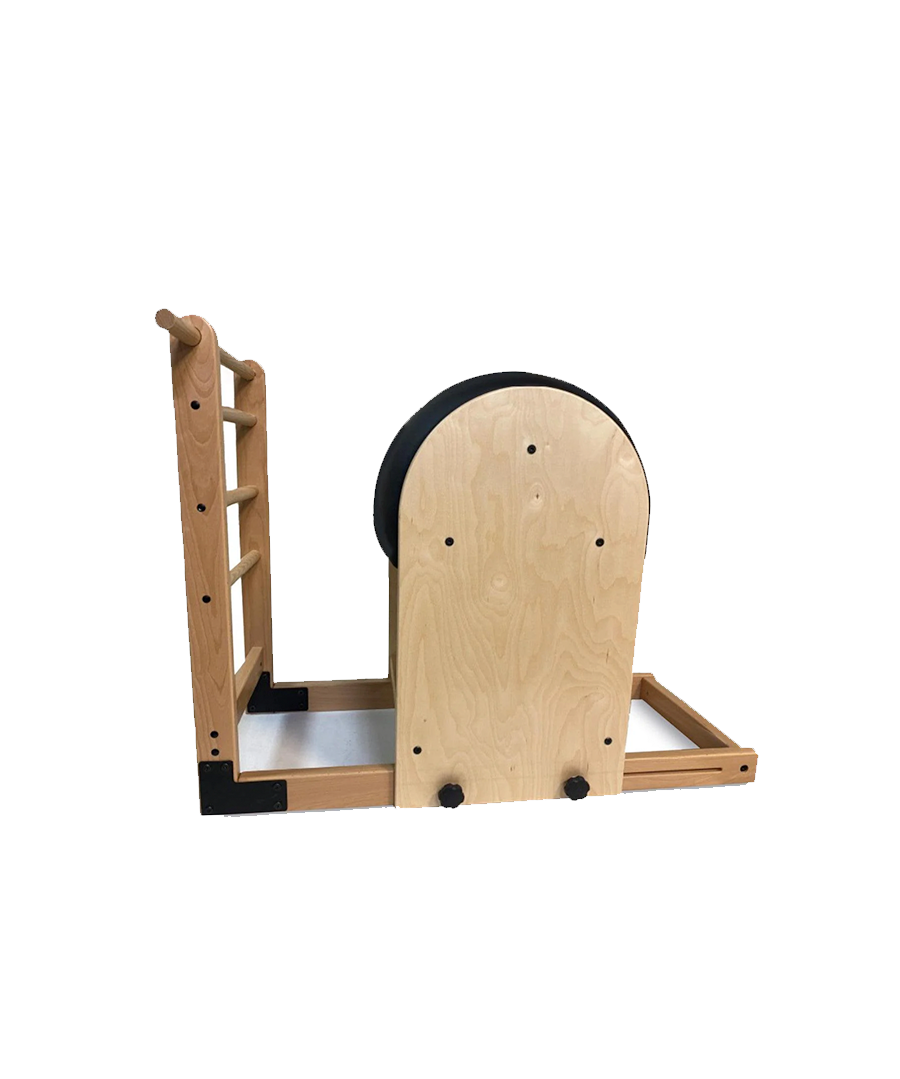 Peak Pilates offers the only High Ladder Barrel in the industry with an easy three-step locking system (kick, slide, lock) for fast, efficient adjustment of the barrel distance. It is built to withstand rigorous workouts while maintaining the accurate ladder rung spacing and barrel contour of the original design.