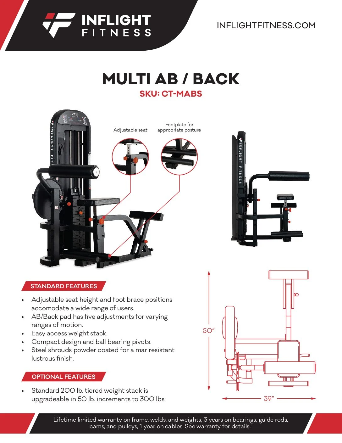 Sale Inflight Multi Ab / Back$3,665.00 Original price was: $3,665.00.$3,330.00Current price is: $3,330.00. Talk to an expert Specifications: Adjustable seat height and foot brace positions accommodate a wide range of users. AB/Back pad has five adjustments for varying ranges of motion. Easy access weight stack. Compact design and ball-bearing pivots. Steel shrouds powder-coated and clear-coated for a mar-resistant lustrous finish. Standard 200 lb. tiered weight stack is upgradeable in 50 lb. increments to 300 lbs. Inflight Multi Ab / Back quantity Add to cart SKU: CT-MABS Categories: Inflight Fitness, Strength Brand: Inflight Fitness Description Description MSRP $3665.00 – OUR PRICE $3330.00 Related products SaleInflight Fitness/StrengthInflight Multi Bicep / Tricep $3,789.00 Original price was: $3,789.00.$3,435.00Current price is: $3,435.00. Add to cart SaleInflight Fitness/StrengthInflight Functional Trainer $5,335.00 Original price was: $5,335.00.$4,850.00Current price is: $4,850.00. Add to cart PMX/StrengthPMX4307-DFR Double Full Rack Miami $7,980.00 Add to cart