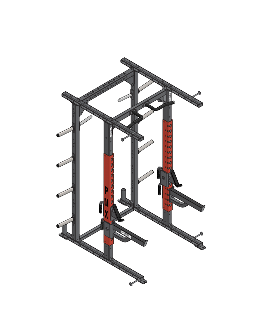 Excelente solución para gimnasios que requieren equipos de fuerza de calidad institucional sin el tamaño de un rack completo. El Half Rack es fácil de acceder y está equipado con todo lo necesario para sentadillas, press y dominadas con la inigualable durabilidad del acero de 7 calibres.