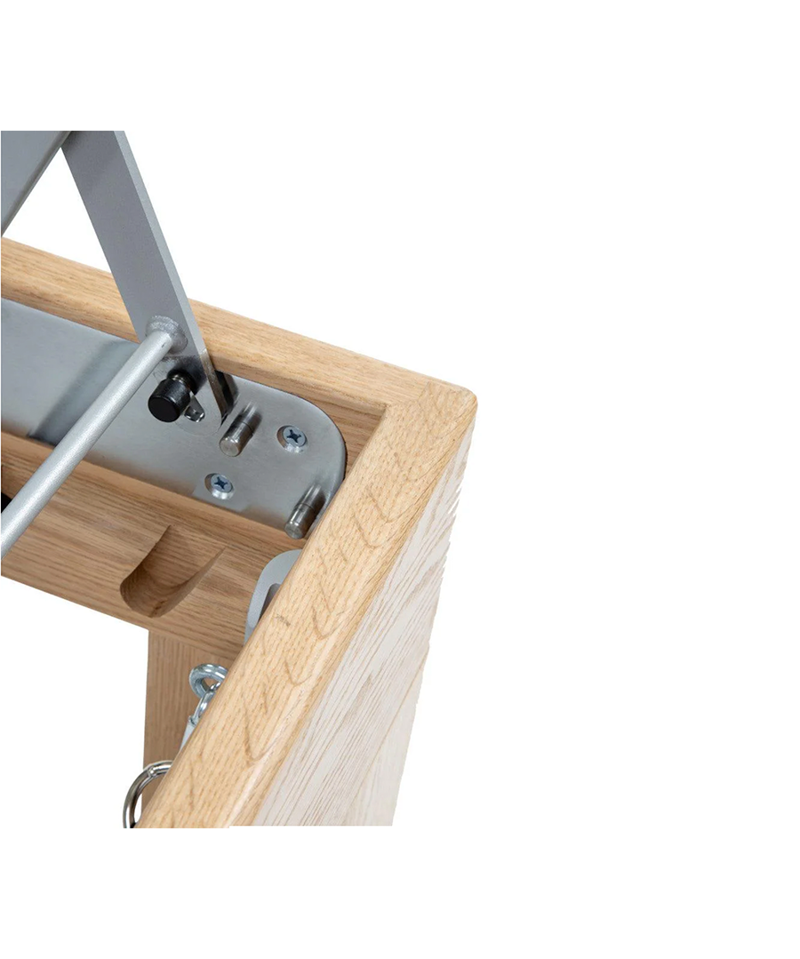This Low Chair is stable and highly effective for various settings, including studios and home use. The split pedal provides functional training benefits by challenging the user’s balance and choreography skills. It is constructed from durable 13-ply Baltic Birch and solid American hardwood.