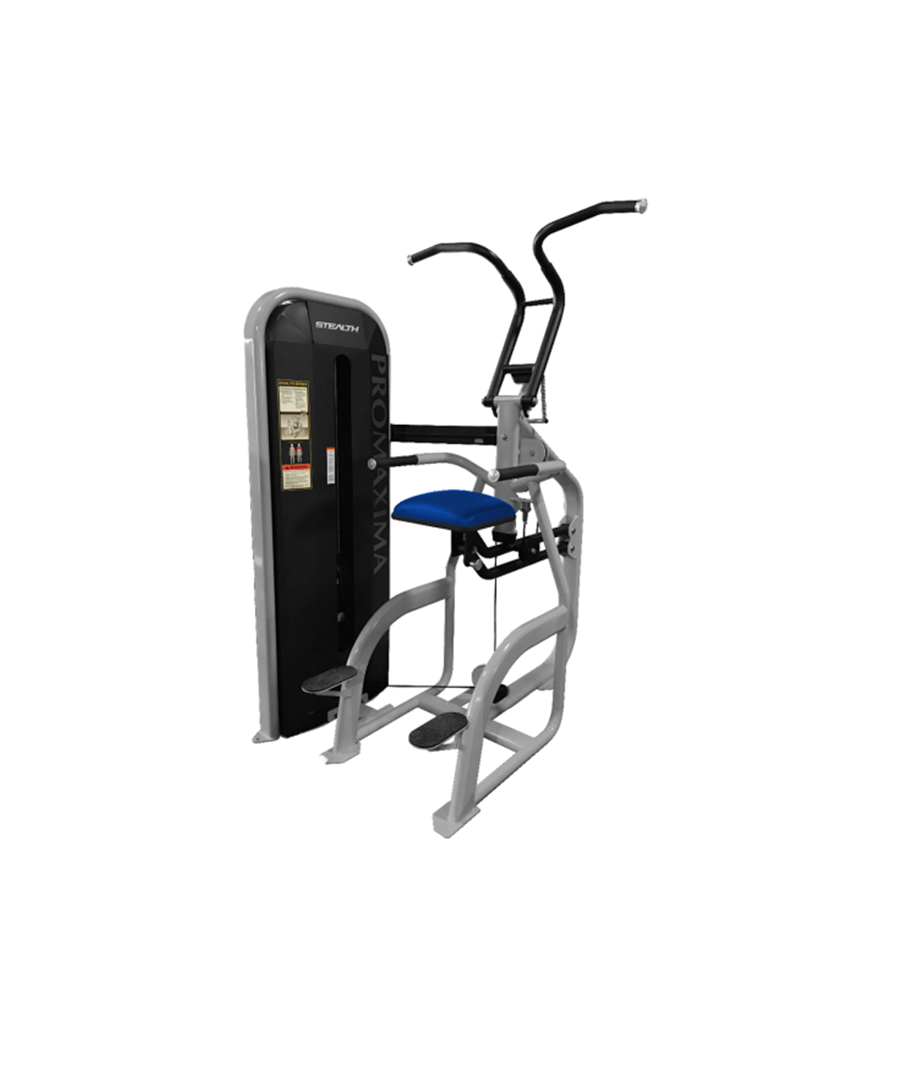 The ST-65 Chin Dip from the Pro Maxima Stealth Series is a top-quality upper body strength machine designed to help users perform chin-ups and dips safely. Its weight-assisted system is ideal for beginners and advanced athletes, providing controlled support for proper form. This machine strengthens biceps, triceps, shoulders, and upper back muscles efficiently.